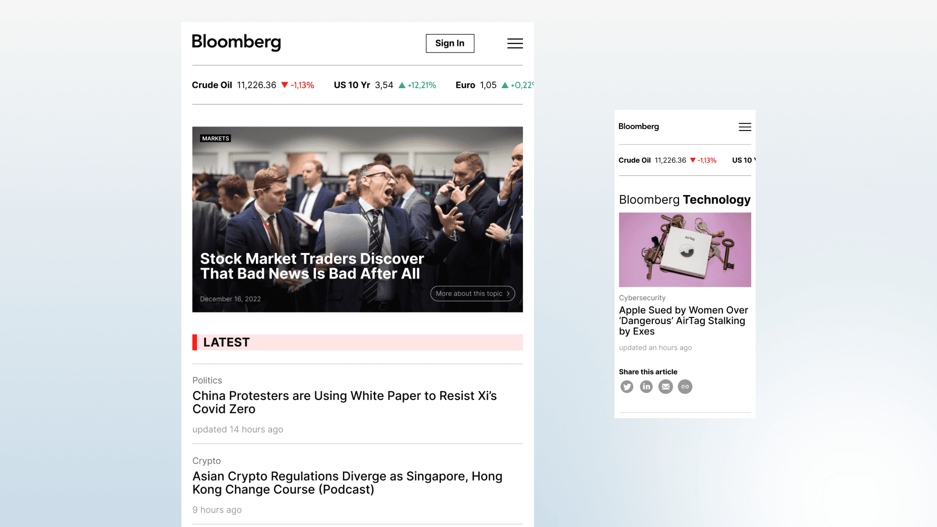 Redesign of the Bloomberg.com news site. Bloomberg L.P. is a privately held financial, software, data, and media company