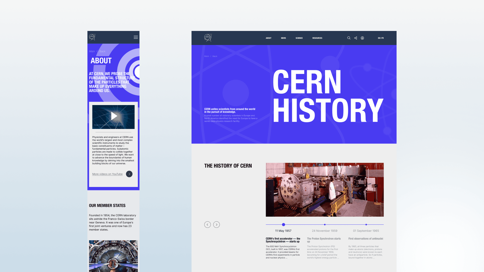 Redesign of the home.cern website. CERN is the European Organization for Nuclear Research, known for operating the largest particle physics laboratory in the world